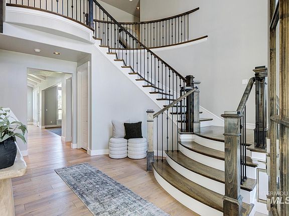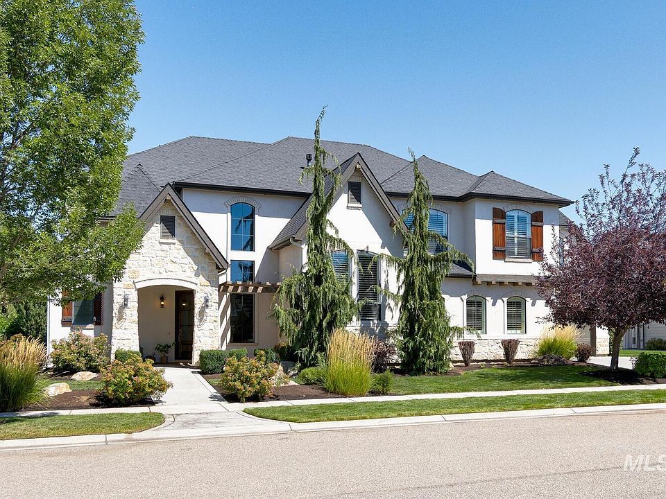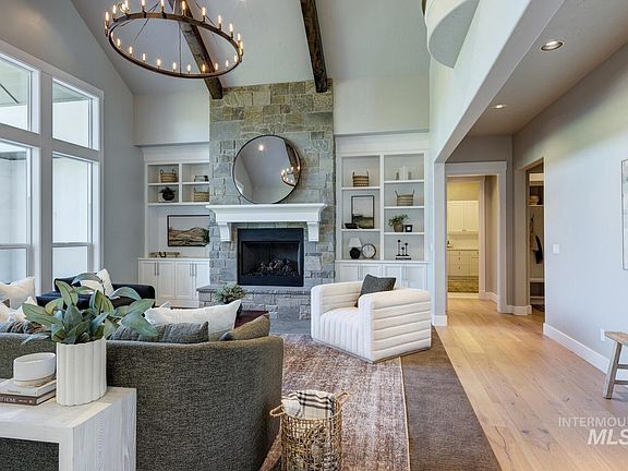 This stunning two-story home will wow you the minute you step into the grand entry! It sits on a .45 lot in the desirable Mace River Ranch neighborhood. Just out your back door is River & Greenbelt access. Kitchen has beautiful engineered hardwood flooring, nice large island, wall to wall cabinetry, quartz counters, upgraded appliances & a large pantry. Living room has a beautiful floor to ceiling stone fireplace, & built-ins for all the extras. Vaulted ceilings throughout the main floor & lots of windows giving a big open feeling. Large master bedroom located on the main level, has a beautiful tile walk-in shower, his & hers quartz counters with lots of space, big stand alone tub plus his & hers master closet with built-in drawer space. Upstairs is so spacious, with large bonus room and 3 bedrooms with their own bathrooms. 1 bedroom/bath down for guests. An elevated office all on its own level. And every mom's dream laundry room!! This home was an award winning Parade home for the builder!