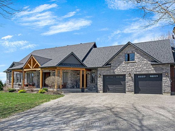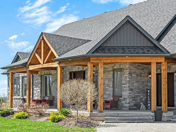 Some homes are built-this one was dreamed into existence. As soon as you drive up, you will begin to feel it. Nestled on a tranquil country acreage, yet 15 minutes from Barrie, this custom-built estate is a rare symphony of craftsmanship, grandeur, and soul-soothing privacy. From the hand-selected white oak floors to the soaring 16-foot cathedral ceilings, every inch whispers intention, a love letter to those who demand more than just a house. Sunlight cascades through oversized windows, illuminating an open-concept layout designed for both stylish entertaining and quiet moments. A 52 marble-clad fireplace, flanked by custom built-ins where fireside evenings become tradition. The Chefs Kitchen is a masterpiece: dual islands, double ovens, and a gas cooktop await culinary artistry, while the ceramic-tiled backsplash glows under pot lighting. The Primary Suite is a private oasis with dual walk-in closets (one custom built) and a spa ensuite featuring heated marble floors, a freestanding tub, and a walk-in glass shower, your personal retreat. The 3 Season Muskoka Room: Fully insulated for year-round serenity, where morning coffee tastes sweeter amid birdsongs. The Entertainers Basement: Two generous bedrooms, a marble-appointed bathroom, and a stone-fireplace lounge with walkout access, ideal for guests or a growing family. Mudroom with a custom dog shower (because even furry family deserve indulgence). A 30x30 insulated garage with premium finishes and 10 foot doors, heated bathroom floors, Hunter Douglas window coverings, and 8-inch trim detailing, no detail was left to chance. Step onto the 16x16 glass-railed deck, where sunset dinners feel like a permanent vacation. Over an acre of peaceful land offers room to breathe, yet Highway 400 is just 5 minutes away, seclusion without sacrifice. This home is for those who refuse to compromise, who understand that true luxury lives in the details. A home this extraordinary deserves an owner who recognizes its magic.