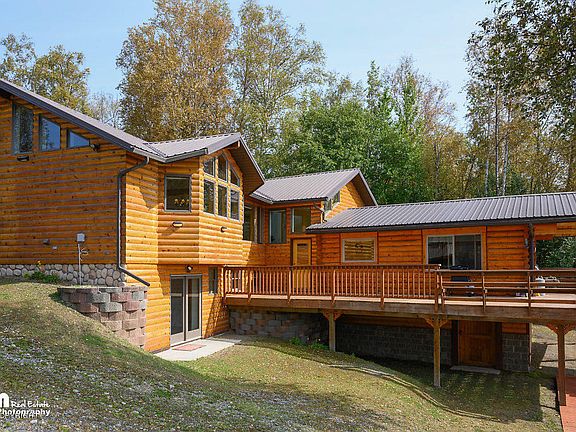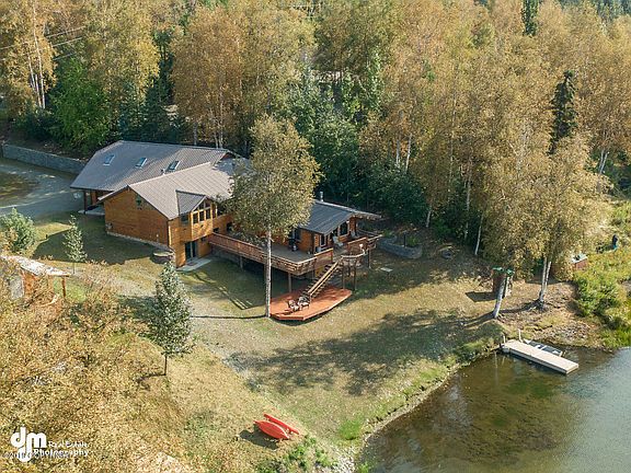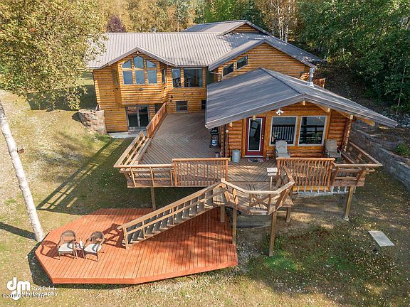 That VIEW! 3,259 sf of living area, 1,120 sf of heated garage, and a bonus 350+ sf of heated storage/shop space. Three large bedrooms, all with en-suite bathrooms. Kitchen, family room, two bedrooms, and wrap-around deck on the main level, overlooking Anderson Lake and the Chugach Mountains. Handmade iron railings, wide-plank pine floors from the East Coast, and custom woodwork throughout.
