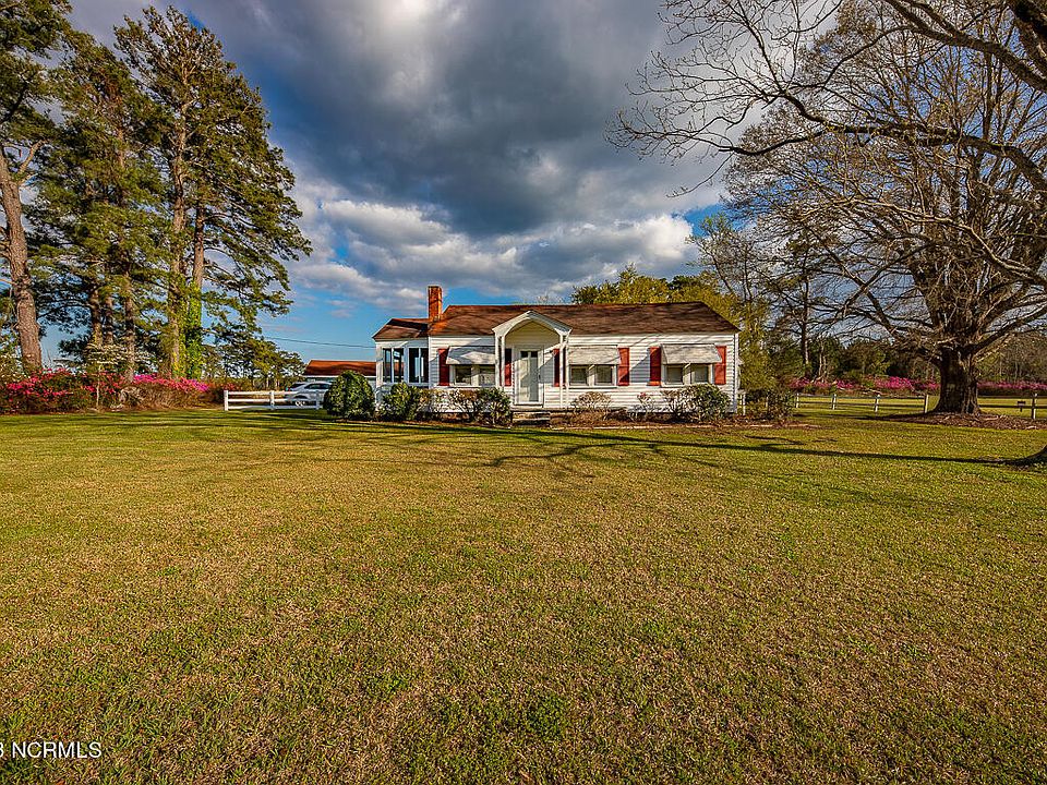 The property sits on a spacious .62-acre lot surrounded by trees, creating a tranquil and private setting. Inside, you'll find a well-maintained living space with ample natural light, hardwood floors, and a cozy layout. Cozy country kitchen and separate dining area. 2 bedrooms share a full-sized bathroom. The second bedroom the seller has made an additional living area. Additional bonus room that makes a great flex space. A large utility room hosts your washer and dryer, with built-in shelving. Enjoy entertaining and relaxing on your large covered, concrete patio this summer.
