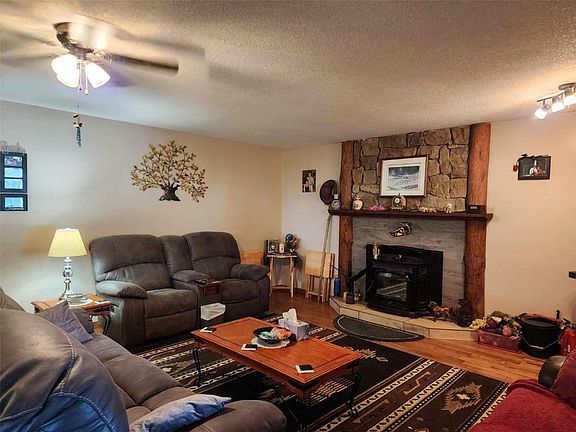 5 acres of level land awaiting your dream life! Lovely 3 bedroom 2 full bath home featuring open floor plan, spacious kitchen with loads of cupboards & a fantastic island with break bar, dining room has sliding glass door to large covered sundeck for entertaining guests! Livingroom has pellet insert in fireplace to enjoy cozy evenings, wet bar off living room to keep your guest hydrated! Walk in pantry off kitchen features loads of cupboards for canning etc. Laundry room beyond pantry also has several shelves for storage. Master bedroom on upper floor is perfect for romantic evenings complete with corner jet tub & gas fireplace. Sliding glass doors lead to enclosed deck to enjoy the views. Attached garage doubles as man cave with gas fireplace. 30' x 30' detached workshop is wired 220 plus has wood stove & gas heater. Insulated chicken coop on concrete and has electrical outlets, property mostly fenced & cross fenced for animals, large barn, pole barn for hay or covered RV storage.
