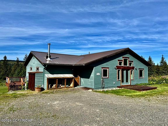 Outdoor enthusiast oasis in highly sought after Homer, Alaska! Lot adjacent to Homestead ski and hiking trail, this location offers year round adventure from your doorstep. Sprawling on 2.12 private acres, this property is equipped with 12'x60' back deck, large garden, chicken coop, play set, dog house, horse shoe pit, fire pit and zip line. The south facing ranch home is designed to take in allof the sunshine, paired with the ground source heat pump, this home stays heated using natural elements (efficient and very cost effective). 7' crawl space provides endless storage and the detached shop with double carport will store any equipment. This true Alaskan home has every detail lined out to maximize efficiency and enjoy the lifestyle that Alaska has to offer.