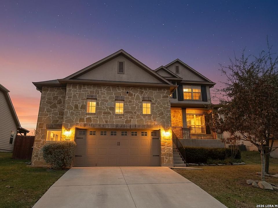 Spacious 2-story home situated on a private cul-de-sac lot overlooking a ranch. Located in the desirable Cypress Point community in Schertz, TX. Wonderful A rated schools in Comal ISD. The open floorplan comes with 4 bedrooms, 3.5 bathrooms (including a Jack & Jill upstairs), Formal Dining/Study, Game Room, Front porch and back covered patio. You will love the 2.5 car garage with a 250 SF storage loft. Downstairs Primary Suite with French Doors to the Primary Bath featuring separate vanities, walk-in closet, toilet room, and separate shower & jetted garden tub. The large kitchen boasts beautiful granite countertops, 42" cabinets, a walk-in pantry, upgraded appliances, and an island kitchen overlooking the bright & airy Living Room with 25-foot soaring ceilings! Tons of windows offer lots of natural light and come with reflective solar tints, adding privacy and energy efficiency. Refrigerator can be included. Enjoy the community park/playground. Conveniently located right off I-35, between San Antonio and New Braunfels, close distance to Randolph Air Force Base, Ikea, and plenty of shopping, dining, & entertainment.