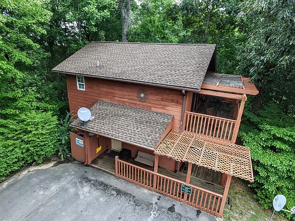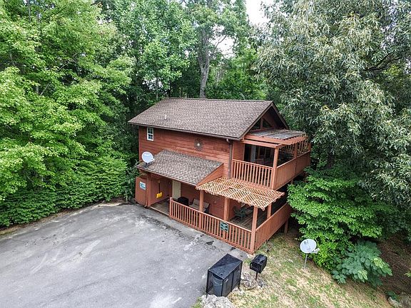 1099 INCOME WAS $65,437 FOR 2021. Mountain View Haven is a wonderful retreat on a dead end road yet it is only 2 miles from the Pigeon Forge Parkway and only 10 minutes from Gatlinburg (the gateway town is on the border of the Great Smoky Mountain National Park). It is also super convenient to the Gatlinburg by-pass which will get you into the park without going thru Gatlinburg crowds. Close to all the activities yet you get that "out in the Mountains" feel just a couple of miles outside of town. Level parking and no steps. Just pull up, unpack and relax. There are two King bedrooms on the lower level with one being a master suite and the other has a bath just outside the bedroom. There is also a full size washer and dryer on this level. (an upgrade from most cabins). Upstairs is a large , vaulted ceiling great room large enough to accommodate a pool table without feeling crowded.. There is a dining table for six , a galley style kitchen and a half bath on this level as well. The best views are up here too. Read the rave reviews from guests at https://www.bluemistcabins.com. The cabin is called Mountain View Haven. The seller also has an adjacent 1 bedroom /1 bath log cabin for sale. See the aerial view in this listing.
