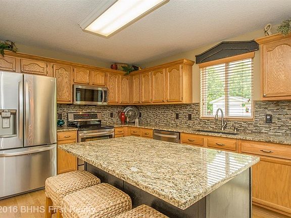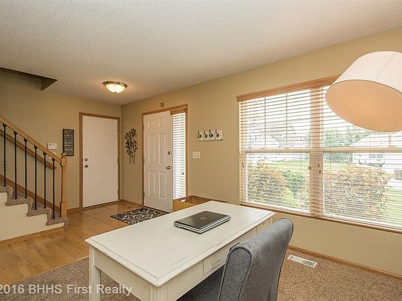 This stunning two story with many upgrades is a must see! Off the entry the den offers versatility as an office or dining room. A spacious kitchen features oak cabinetry, island, granite counters, and slate and glass backsplash. A nicely sized eating area opens to the family room highlighted by a stone fireplace with accent lighting and cabinets. The second level has a full guest bath, laundry area, and four large bedrooms, including an oversized master bedroom with a walk-in closet and three-fourth bath. The finished lower level family room enhances this fabulous floor plan. Exit from the slider onto a large deck with access to a patio with brick pavers. The manicured yard and extensive landscaping add to its wonderful curb appeal. Other amenities include irrigation, shingles (2015), ceramic tile flooring in guest and master bath, custom wood blinds, security system and a 12 ft x 12 ft shed. Copper Creek Lake, golf course, bike/walking trails and theater are just steps away.
