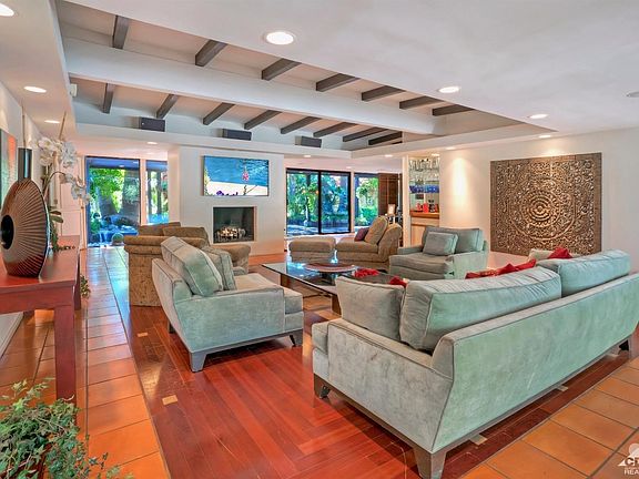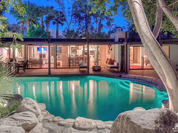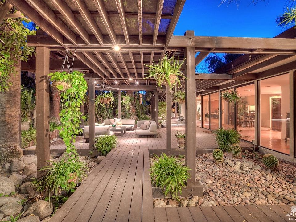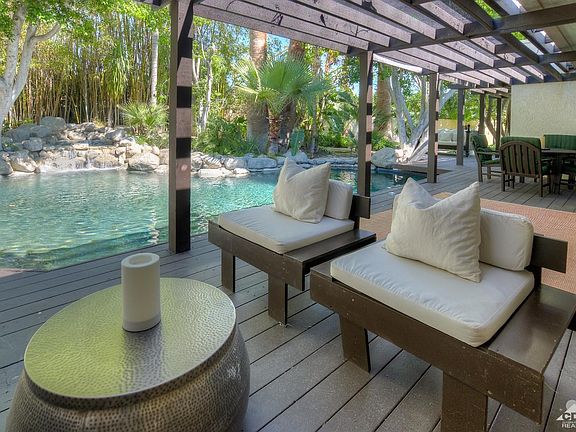 Spectacular zen-like tropical gardens provide the backdrop for this unique contemporary residence set on a half-acre in the heart of Palm Desert. This extremely private three bedroom three bathroom celebrity-owned retreat offers both shade and sun in a setting reminiscent of a Balinese resort. Complete with a wide variety of botanicals, including bamboo, and expansive wood decks cantilevering over the beautiful salt-water swimming pool and spa with rock waterfall, one finds the perfect get-away any time of the year. Once featured in Sunset Magazine, this unique desert oasis boasts a chef's kitchen, walls of glass, two fireplaces, beamed ceilings, and large outdoor kitchen/bar area. The walled and gated mini-estate provides maximum seclusion while being just minutes from world-class El Paseo shopping, the best golf courses, gourmet restaurants, spas, casinos, and easy coastal commutes. For those interested in investment, the property has an impressive rental history.