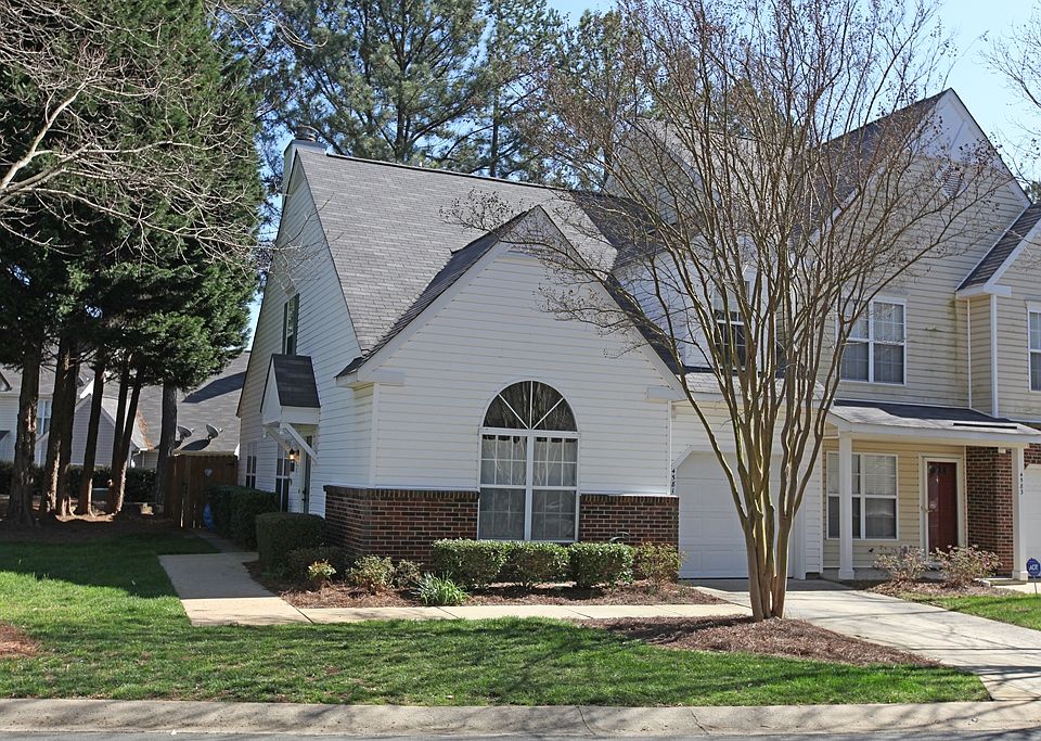 AVAILABLE FOR OCCUPANCY JUNE 1. Bright, open end unit townhome with 3 bedrooms and 2 baths with Master BR on main level and attached 1 car garage. Big kitchen, lots of cabinet, pretty tiled backspash, vaulted ceilings in family room, fireplace, updated lighting and plumbing fixtures, private fenced courtyard, new carpet, large SS refrigerator. Community pool. Easy access to Northlake Mall and I77. WATER AND SEWER INCLUDED!!