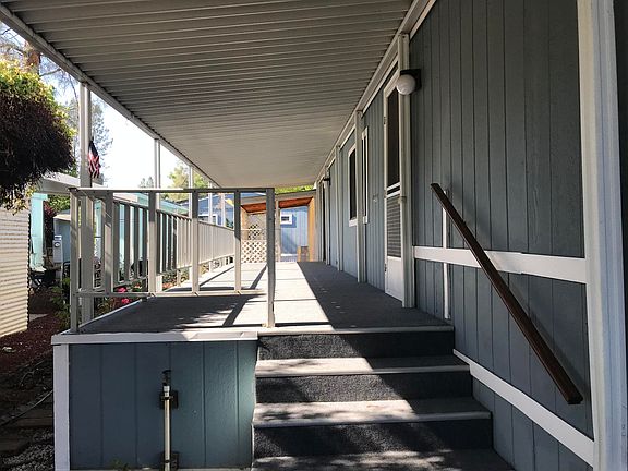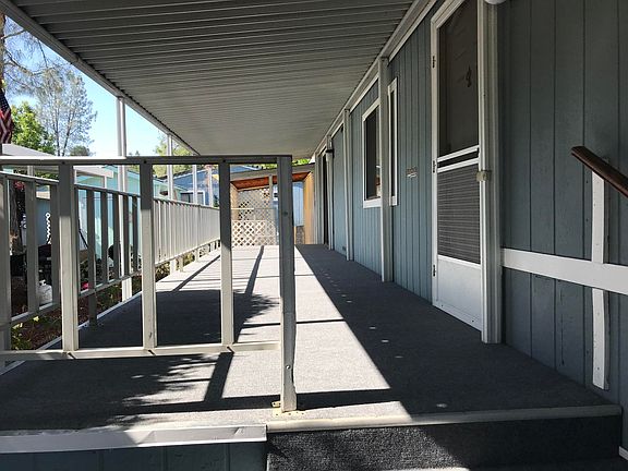 Spacious open floor plan with each bedroom and bathroom located at opposite ends. Covered parking w/lots of storage space. Front porch is covered from end to end making it convenient to enjoy the peaceful outdoors. Nice location at end of street with large shade tree. Being sold as-is and must have park approval before submitting offer. Park application can be found in documents tab. CB211