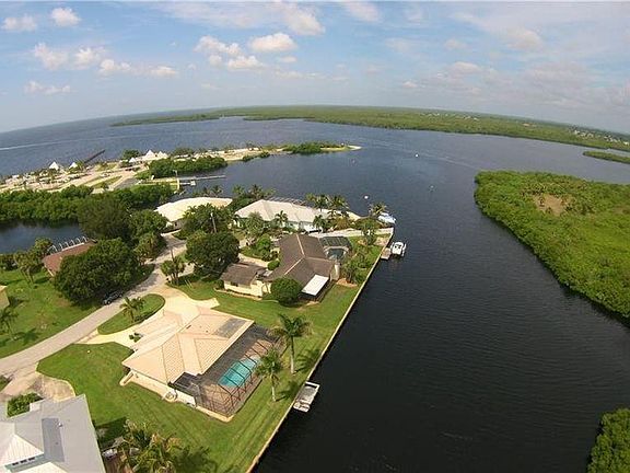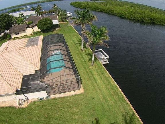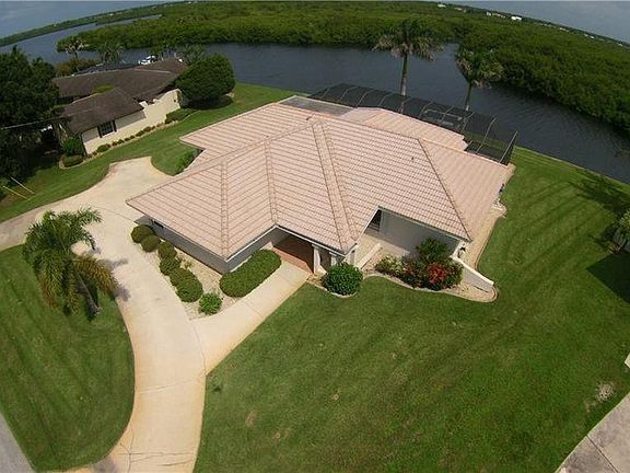 Minutes to Charlotte Harbor with 155 foot on the water! This 3 bedroom sailboat waterfront pool home has over 2,000 square feet of living space, living and dining, family room, kitchen, and spacious Florida Room. Spectacular view from all main living areas with wall to wall windows in living area for panoramic view of waterways. Kitchen boasts granite counters, built in oven and microwave, cooktop range, snack bar, pantry and lots of cabinets, and pass through window to Florida Room for easy entertaining. Master suite has laminate wood flooring, walk in closet, and private bath. Spacious Florida Room overlooks pool and extended lanai with breath taking view of intersecting waterways. Located in a beautiful and quiet waterfront community and only a short distance to Port Charlotte Beach Complex with fishing pier, beach, and pool. Proximity to local beaches in Englewood, Venice, and Fort Myers, dining, shopping, and golf courses makes this property ideal for the Florida lifestyle. Also, easy access to public waterfront parks with bike and walking trails and picnic areas, and historic downtown Punta Gorda and popular Fishermen's Village with quaint shops, cafes, and entertainment. Watch the dolphins and numerous waterfowl in your own serene, tropical paradise. Please note pool is not heated.