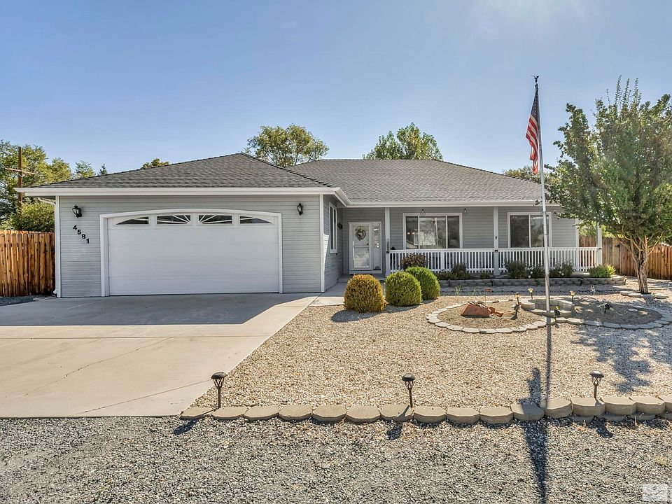 BRAND NEW TO MARKET! Immaculate 2x6 framed single-story home, boasting 1,640 square feet of well-designed living space on a .32-acre lot. PRIVATE setting with VIEWS! The home features a SPLIT FLOOR PLAN, with a beautifully updated kitchen that showcases stainless steel appliances, granite countertops, modern finishes, and a reverse osmosis faucet. The primary bedroom is complete with a slider to the patio, a walk-in closet, dual vanities, a large shower, and a separate water closet., The two additional bedrooms are spacious and conveniently located with a bathroom in between. Side yard access with ample RV/BOAT parking, oversized two-car garage and storage shed. Xeriscape front yard. Adorable, covered front porch looking out towards open lot and views. Fenced backyard with well-maintained lawn surrounded by mature trees.