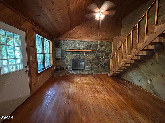 Cozy Cabin in Hartford with knotty pine interior and a huge stone fireplace. Nestled in the mountains of East TN with 1.5+ unrestricted acres, a wraparound porch freshly stained, and utility water installed. Cabin has a new septic system, a newer metal roof, a full kitchen with new counter tops. New flooring in the bathroom, and a loft area. Would be a great Air B&B or personal great away/ residence. Come see this one today!! There is an additional tract of land for sell next door with a well and a septic system installed MLS# 302526