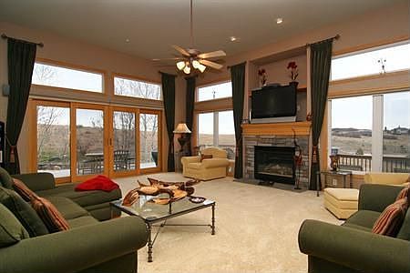 Lovely Bell Mountain Ranch Home with beautiful stone fireplace & hardwood throughout the main floor. The kitchen is the heart of this home & opens to the Family Room, Dining Room, and outdoor areas. The Kitchen Island has seating for entertaining, an eating area make everyday living a breeze! Light & bright main floor master retreat has a sitting area great for cuddling up with your favorite book. Master bath with relaxing tub, shower & big walk-in closet. Study includes built-ins. Basement Level has a walkout patio, another Great Room with wetbar, fireplace, 3 bedrooms, 2 baths and a big theatre room with projector and surround sound. The outdoor areas of this home are second to none & the beautiful views of rolling hills & Bell Mountain are perfect for warm summer evenings with family & friends. Enormous wrap around deck with multiple entertaining areas and beautiful water feature. Large cement driveway & oversized 3 car garage.