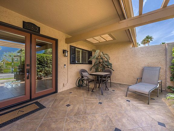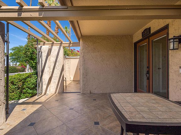Within walking distance to ''El Paseo'' (the ''Rodeo Drive of the Desert'') and the myriad of upscale retail and fine dining establishments it has to offer, this well-appointed turnkey furnished, Montecito Condominium has that classic Palm Springs vibe and feel. Enjoy your morning coffee while sitting on your spacious tile patio with a secluded greenbelt, pool, and view of the spectacular Santa Rosa Mountains. A gated front courtyard area and tile patio provides excellent curb appeal while the French door entry allows the home to be filled with rays of natural light. Stone tile flooring is used extensively in the home while recessed lighting and plantation shutters are used throughout. The exquisitely remodeled gourmet designer kitchen has upgraded cabinetry with granite countertops, tile backsplash and contemporary high-end stainless-steel appliances. The primary suite has a sliding glass door to the rear patio and a wall-length mirrored closet with custom built-in storage while the bathroom has an upgraded vanity, tile surfaces and a custom seamless glass enclosed shower. The guest bedroom also has built-in closet storage and a sliding glass door to its own private patio and the bathroom has a custom seamless glass enclosed shower, an upgraded vanity, and a skylight. The home comes complete with a laundry closet in the hallway between the bedrooms as well as a 1-car detached garage.