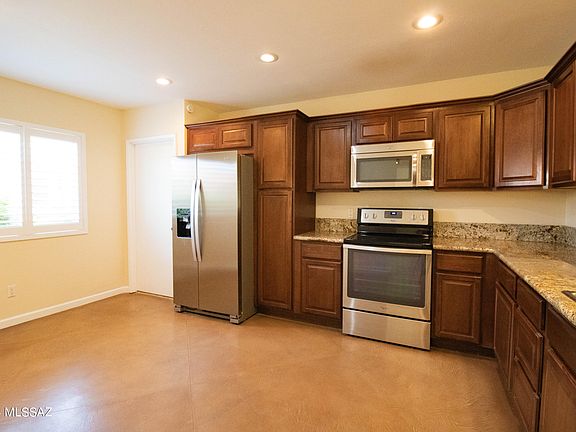 Welcome to this charming 3-bedroom, 2-bathroom home in the Foothills of Tucson, AZ. This single-story house features stained concrete floors and a cozy fireplace, perfect for relaxing evenings. The kitchen boasts stainless steel appliances that are ideal for cooking delicious meals. Enjoy the convenience of a 2-car garage with a washer/dryer included. The community offers a pool, tennis courts, clubhouse, and gym. Additionally, the rolling shutters provide added security and privacy. Don't miss out on this wonderful opportunity to make this house your home!