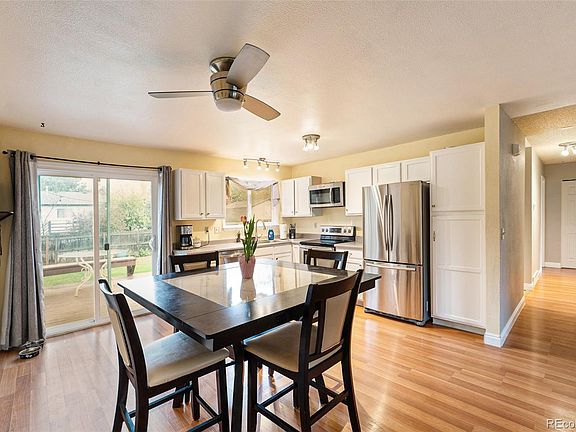 **LOCATION, LOCATION, LOCATION** Welcome to this fabulous Three Bedroom, One Bathroom, ranch style home located just minutes away from the foothills, the Town of Morrison, Red Rocks and much more! This beautiful property has been incredibly well maintained! Make your way up to the front door and take in the newly landscaped front yard that includes a sprinkler system. As you enter you will quickly notice the light/bright open concept that has been nicely taken care of over the years. The stunning engineered flooring, combined with the white kitchen cabinets, the stainless steel appliances, the neutral paint colors make you feel right at home. The oversized one car garage is easily accessed from the kitchen dining area, as is the backyard! Take a moment to step out on the back deck and take in the backyard oasis that includes a custom/cozy firepit area, a massive shed, newly landscaped yard, automatic sprinklers and a freshly stained deck! Make your way back into this lovely home to tour each bedroom which has plenty of space and closet space. The Primary Bedroom has its own access to the main bathroom, making this an easy way to begin and end each day. The laundry room is just down the hall and the washer/dryer are included. Windows, gutters, roof and exterior paint have all been updated in the last 5 years or so. This home truly displays the pride of ownership and is a must see!