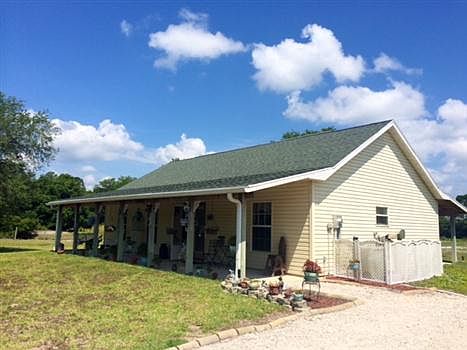 Custom 2003 built home on 6.29 high and dry serene acres. Land is fenced, cleared, has 23ft deep stocked pond and its A3 zoning permits horses, cows, goats and more. This 2 bed 2 bath home features vaulted ceilings, open floor plan, tile & laminate throughout and more. If you're looking for a place to park your R/V's, toys and more then look no further. RV hook ups are installed near side of home and generator is included for those pesky Florida storms.