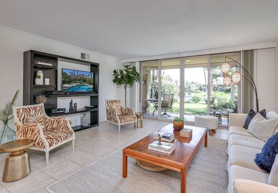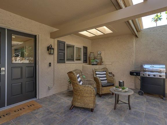 Beautifully appointed 2 bedroom / 2 bath 1,392 square foot condo in Montecito condos in South Palm Desert! Unit features a combination of tile and carpeting throughout the open floor plan that combines dining and living rooms which open into a fully renovated kitchen. Private entry courtyard offers a comfortable outdoor area for barbecuing and lounging while enjoying gorgeous southern mountain views while your poolside patio off the living room showcases a beautiful view of the resort like pool area. Other features include dual paned sliders and windows, skylights in various areas bringing additional natural light into unit and spacious bedrooms with ample closet space. Parking includes a detached garage space with lots of secure storage, and additional on-street parking for owners and guests. Montecito is a beautiful 32 unit complex with 2 pools, spas and lush greenbelts located within a 5 minute walk to the dining and shopping on the El Paseo of South Palm Desert.