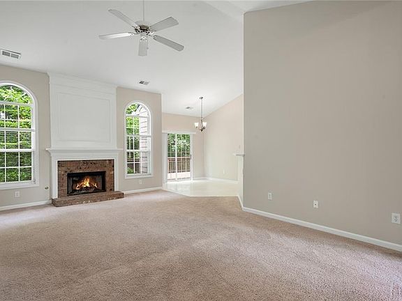 Charming home with Master on Main. This well maintained property has been freshly painted in neutral colors and is move in ready. Numerous, oversized windows throughout allow the natural light to flood indoors. Cathedral ceilings soar in the living room where owner can also enjoy a fireplace. Separate dining room with wainscoting and tray ceiling. Glassed double door front room off of the entry hall can be used as an office/library. A sunny, eat-in kitchen overlooks the newly treated deck and backyard. Large Master Suite with tray ceiling and ensuite tiled bath with separate tub and shower as well as large walk in closet. The two secondary bedrooms are generously sized. Full laundry room leads into the garage. Updated light fixtures. Brand new roof and gutters. Terrific swim/tennis community with fabulous playground. Two minutes from I-75. Quaint downtown Acworth, Lake Allatoona and KSU all just 4 miles away.