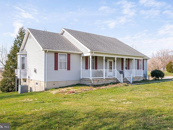 The Open House scheduled 4.15.2023, 12:00 - 2:00 pm has been Cancelled. However I will be there incase someone comes by the house. This serene light and bright three bedroom two bath Rancher with commanding mountain and pastoral views is sited on 3.15 acres complemented with mature landscaping and trees. The house welcomes one with a 6 ft x 30 ft covered front porch offering outdoor space to sit and enjoy the views and sunrises over the Blueridge Mountains. The interior of the home provides 9 ft. ceilings, natural light and views from all rooms. The large living room has a gas fireplace, mantle and recessed lighting. Adjacent to the living room and kitchen, is a light filled dining room with a hardwood floor, bay window and glass doors to the 12 ft x 16 ft raised deck allowing expansion of indoor living area to the outdoor deck for quiet evenings of dining and conversation. The country kitchen offers a storage pantry, eat in space and a gas stove along with the other kitchen appliances. Three bedrooms and two full baths located on the main level north side of the foyer. Each bedroom offers ample closet space with a walk in closet in the primary bedroom. The large primary bedroom boasts a bay window with pastoral views to the west and the en-suite primary bathroom offers two full vanities and a walk in shower. Connecting stairs take you down to the generous unfinished walk out basement with laundry area, garage access, rough in for a bathroom and space for storage or other usage. The large two car side loading garage offers plenty of room for cars, storage and equipment. Located in the scenic Kabletown area with easy access to Virginia and Maryland commuter routes, Charles Town, Clarke and Loudoun Counties. Jefferson County offers many outdoor activities, historical venues, shopping and restaurants and Harpers Ferry National Park.