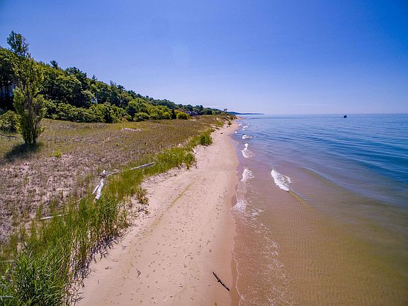 Spectacular Beach! 100' Lake Michigan low bluff home in private setting just west of Stony Lake. This 3 level custom built home features: an abundance of space for friends and family with 5 bedrooms, including a master suite, and 4 full bathroom, a large top floor that can accommodate a great recreation room or additional space to sleep a small troop, an expansive deck, main level open floor design, tiled kitchen and dining area, a large living room with a fireplace and magnificent lake views, as well as a separate large den area. There is also the possibility to purchase the adjoining 100 foot lot - complete with a small garage.
