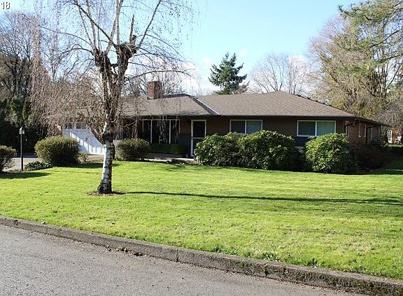 Sprawling Mid Century one level home with tastefully updated finishes through out. New kitchen with quartz counters, stainless appliances and gas range. Updated bathrooms.Master has heated tile floor. Four bedrooms plus den/ office. High efficiency furnace. Newer roof.Landscaped 18,000 sq. ft. lot with water feature, pond and back yard cottage/ studio. Additional Storage shed. Walk to Willamette River. Deeded river access.