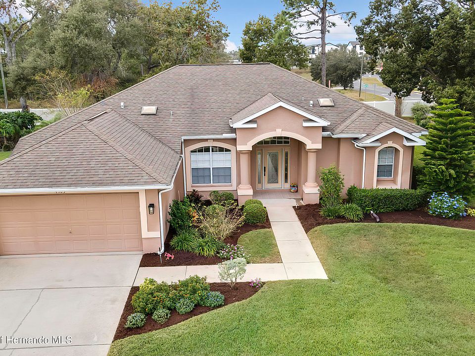Nestled in the heart of the coveted Silverthorn Country Club, this charming 3-bedroom, 2-bath home offers the ultimate Florida lifestyle. Step into an open floor plan filled with natural light from overhead skylights, highlighting the seamless flow between spacious living areas. Enjoy a beautifully landscaped yard that complements the large lanai—perfect for relaxing or entertaining. Located in a gated community with a public golf course that permits golf carts on its roadways, this home gives you access to a host of amenities, including a community pool, workout center, and the latest pickleball courts for active, tennis, basketball, social fun! Silverthorn is a paradise for golf enthusiasts, with lush fairways right at your doorstep, and easy access to major routes means you're just 45 minutes from Tampa Airport and mere minutes from the Suncoast Parkway. Discover an unparalleled lifestyle in one of the region's most vibrant golfing communities.
