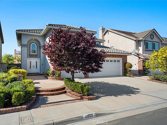 Welcome to the home with everything - the largest Gallery model in the prestigious Sorrento community of Cypress. One of the final Sorrento homes built in 1996, this beautifully maintained home offers approximately 2,939 square feet of elegant living space, featuring five spacious bedrooms and three full baths. A highly desirable main-level bedroom and full bath provide flexible living options for extended family or as a guest room. Step through the formal double-door entry into a grand two-story foyer finished with marble flooring, and into the step-down formal living room. The formal dining room is ideal for entertaining and offers views of the beautifully landscaped backyard. The separate family room features a cozy brick fireplace, custom built-in shelving, and a full entertainment center. The upgraded kitchen offers granite counters, stainless steel appliances, deep walk-in pantry with custom shelving, and an adjoining daily dining area - perfect for casual meals and gatherings. Upstairs, the luxurious primary suite welcomes you with double-entry doors, a spacious walk-in closet, and a completely upgraded en-suite bath. The primary bath is thoughtfully designed with new vanity cabinetry, dual wash basins, a deep pedestal soaking tub, and a beautiful marble finished custom shower. The oversized fifth bedroom is a versatile bonus room featuring a full closet and exquisite built-in dual desks - ideal for a home office or study space, play room for the children, or a fabulous theatre room. The second level also includes three additional generously sized bedrooms. One secondary bedroom offers two walk-in closets. The upgraded main bath includes dual sinks and modern finishes. Additional features throughout the home include custom hardwood flooring, central air conditioning, plantation shutters, recessed lighting, rounded corners, and raised-panel interior doors with upgraded hardware. The main-level laundry room is equipped with storage cabinetry and a wash basin for added convenience. Step outside to your private backyard oasis. The professionally landscaped yard features a custom heated pool and spa with stone-accented waterfalls, mature tropical plants, a built-in stainless steel barbecue grill, and a stone-finished outdoor dining counter, and electric patio cover - perfect for entertaining guests year-round. Located just a short walk from the Sorrento community park.