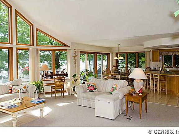 Stunning Ranch home on the west side of Conesus Lake. Breathtaking 96' of lakefront offers beautiful north & south views. That view is framed by the huge wall of windows in the great room with a wood burning fireplace. First floor laundry, basement could be finished.