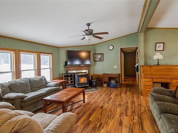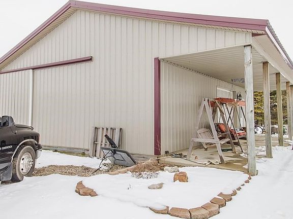 Country 4 bedroom/2 full bath home on over 15 acres with a 40x30 pole barn and 24x16 metal lean-to. Spacious main living area with cozy wood-pellet stove, formal dining room, and kitchen with eat-at bar. The master bedroom includes an en suite bath/laundry room. The split floor plan provides 3 additional bedrooms and 2nd full bath on the opposite end of the home. Front yard features an above ground pool for summer fun and enjoy relaxing on your back deck! The barn has a partial concrete floor, canopy overhang, sliding side door, and a front garage door. The property offers some mature trees and tillable acreage. Don't miss your chance, call today!
