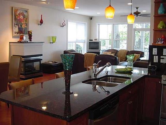 Luxurious lake living! Custom designed 2005, 4 story, 3 bedrooms plus loft w/Murphy bed, 2.5 bath Contemporary. Quality High End amenities throughout. Kitchen w/Cherry Cabinets, granite counter tops & professional stainless steel appliances. Master bedroom suite w/fireplace, deck & master bath. Open living area w/fireplace & dining area. Central Vac w/tow kicks. Multiple Trex decks,ideal for entertaining! Attached garage w/lots of storage above. Family room, bathroom, kitchenette & workshop in lower level that walks out to the lake. Professionally landscaped & new break wall. Spectacular!