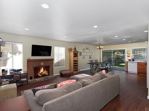Beautifully remodeled 4 bedroom, 2 bath home which features extra large family room with cozy fireplace that opens to kitchen with newer appliances and custom cabinets. Upgrades include, custom paint, scraped ceilings, updated lighting, wood laminate flooring, window blinds and central air conditioning. Great for entertaining in the wonderful backyard with covered patio and view of mountains. 2 car attached garage with direct access to home. Great corner lot location, close to parks, schools, shopping, 91 & 15 freeways.