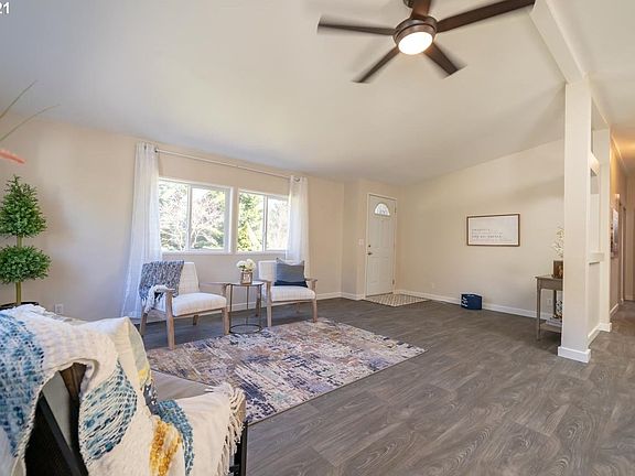 What a nice place to relax & enjoy your own 1/2 acre space! New flooring thru-out and nice open floorplan w/vaulted ceiling. Lots of windows make it light & bright w/pretty views. White painted kitch cabinets plus lg island. Fresh exterior paint & new roof in 2020. Covered back deck lets you enjoy outdoor living. Oversized dbl garage + fenced backyard. Fruit trees & seasonal creek all make this a beautiful property on a dead-end lane! Close to fishing, parks & rec areas yet only 30 min to Salem.