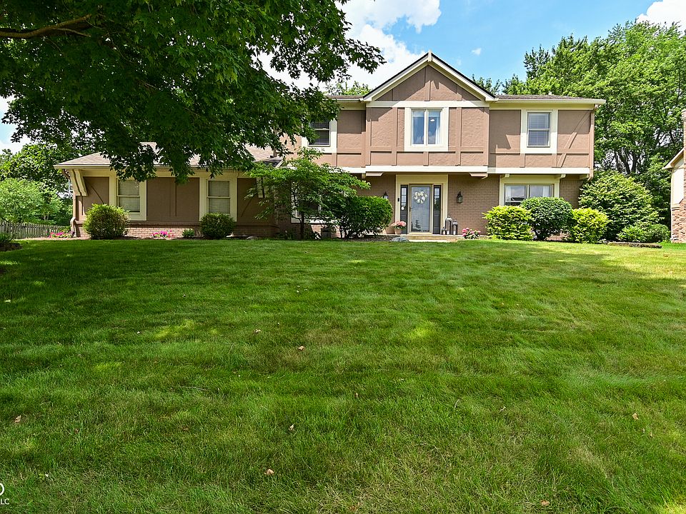 This beautifully updated 4-bedroom, 2.5-bath home offers space, style, and convenience in one of Carmel's most established neighborhoods. Step inside to find new luxury vinyl plank flooring throughout the main level, stairs, upper hallway, and primary bedroom, adding warmth and continuity to the home's inviting layout. The heart of the home is the large open kitchen, featuring a breakfast bar, granite counter-tops with ample counter space, and a sunny dining area-perfect for everyday living and entertaining. Multiple living spaces include a formal living room, a cozy family room with fireplace, and a charming sunroom that brings the outdoors in year-round. A dedicated dining room and convenient main-level laundry add to the functionality. Upstairs, the spacious primary suite with a walk-in closet and three additional bedrooms provide comfortable accommodations for family and guests. The finished basement offers additional living space ideal for a rec room, office, and/or workout area. Enjoy outdoor living in the large backyard with a wood deck-perfect for summer gatherings. Just minutes from shopping, dining, parks, walking trails, and vibrant downtown Carmel, this home combines comfort, location, and lifestyle. Don't miss your chance to call Brookshire North home! Voluntary HOA, $100 per year.
