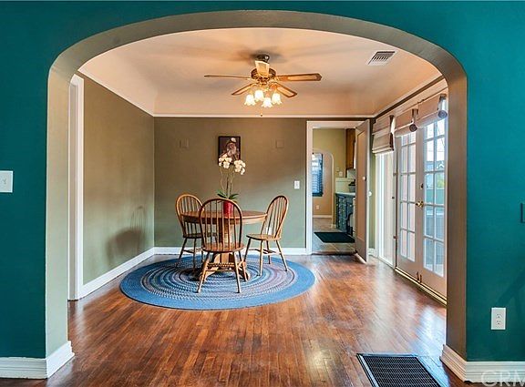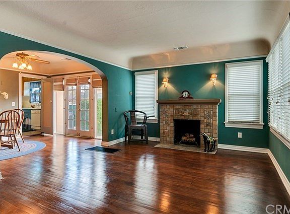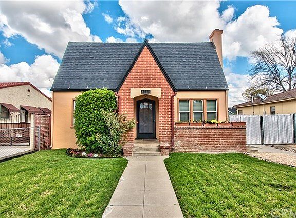 This charming Tudor in the historic Magnolia district of Riverside is sure to please! You cannot beat this location. This 2 bedrooms 1 bath home is filled with charm. As you enter, you are welcomed through a unique front door. The living room has recently refurbished hardwood floors and a "Batchelder" tile fireplace as the focal point of the room. The dining room carries the wood floor over and has an appealing curved ceiling. Both bedrooms are good sized, with original built-ins in the hallways, glass knob door handles and other original features that are a must see! The bathroom has a unique tile feature with a tub shower combo and a circular shower curtain. A door in the hallway leads you to a secret stairway to a larger room with closet that has a great view of the well-manicured backyard. On the other side of the dining room, this quaint kitchen has a window over the kitchen sink and a happy blue hue accented with window curtains to match. Also, it has a breakfast nook that is attached to a service porch laundry room with storage that is located on the backside of the house. Off the backdoor, there are steps to the underground cellar, that is perfect for extra storage. The two car garage is detached with one of the longest driveways in the neighborhood. The lot is a good size with a nice green yard and an area to garden including a citrus tree.