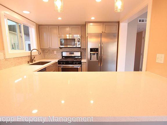Large Dual Master Condo, completely remodeled, quiet and ON THE WATER AT CARLSBAD LAGOON. - Available March 1st. Comes with your own boat slip on private dock in Bristol Cove! This place is amazing Remodeled with NEW: Kitchen with quartz counters, high end cabinets, lighting, stainless steel appliances; NEW flooring; NEW 2 full bathrooms AND an additional half bath; NEW paint; NEW railing off of your large private view deck. Absolutely breathtaking. Upstairs unit with high ceilings and recessed lighting. Both bedrooms are massive in size and each large walk-in closets attached and completely remodeled, brand new bathrooms. Each bedroom has its own private water view deck and even have their own separate entrances. Laundry is in-unit and well-placed -- upstairs between the two bedrooms. Two assigned, covered parking spaces included. Also has a big storage closet for gear. This place is amazing and is ready to go. It's an absolute must see. Non-furnished. 1 year lease. Non-smoking. Will consider a small pet. (RLNE2029338)