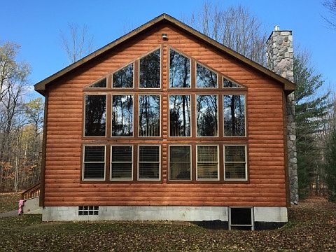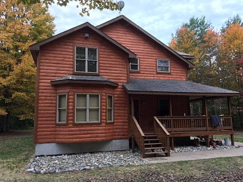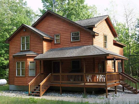Beautiful log home, 3 bedroom, 2 bath w/jetted tub, full basement, field stone fireplace, vaulted ceilings with a floor to ceiling view out back. Ceramic tile, knotty pine, top quality materials thru-out. SOLD