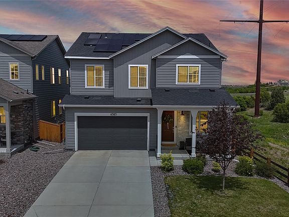 Welcome to your dream, solar powered home (fully paid off solar) in the highly desired Terrain Neighborhood that is designed for modern living and luxury comfort! Step inside to a spacious 3-bed, 2.5-bath haven, meticulously crafted with upscale finishes and thoughtful upgrades throughout. Upon entering, you're immediately struck by the grandeur of the great room, boasting soaring 18-foot ceilings that create an impressive sense of space and airiness. The open concept layout seamlessly connects the living, dining, and kitchen areas, perfect for entertaining guests or enjoying family time. The heart of the home is undoubtedly the Gourmet Chef's Kitchen, featuring a Custom Quartz Waterfall Island that serves as both a functional workspace and a stylish centerpiece. Equipped with Stainless Steel Whirlpool appliances, including a gas range, two ovens, and a convection microwave, this kitchen caters to culinary enthusiasts and casual cooks alike. Oversized windows flood the space with natural light, creating a warm and inviting ambiance. Retreat to the primary bedroom suite, where luxury awaits. Pamper yourself in the lavish Spa Shower designed to melt away stress and tension. Upstairs, a versatile loft offers additional living space, perfect for use as a home office, media room, or play area. Additionally, the main floor flex room, at the entry of the house, can serve as a home office or quaint coffee nook. From designer lighting fixtures to premium LVP flooring and Shaker cabinetry, every detail has been carefully selected to exude sophistication and quality. Enjoy the serenity of the open space with limited neighbors to interrupt the peaceful surroundings. Whether you're relaxing on the patio, gardening in the yard, or simply taking in the views & watching the wildlife, this outdoor space offers endless possibilities for enjoyment and relaxation. Minutes to downtown Castle Rock, Outlet Mall, Gateway Open Space, and I-25!