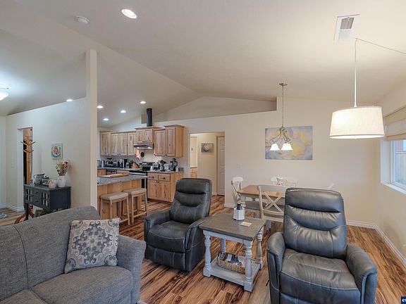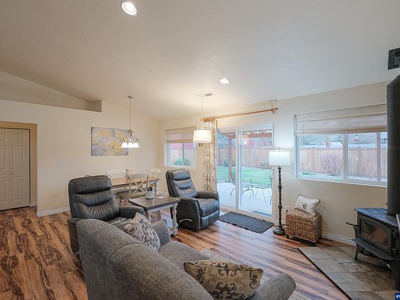 Welcome to this beautifully maintained 3-bed, 2-bath home offering modern convenience and cozy charm. Set on a spacious 0.28-acre lot, it features durable wood laminate floors, a cozy woodstove for added warmth, a well-appointed kitchen with sleek appliances, and a large greenhouse perfect for gardening. Enjoy outdoor living with a covered patio for year-round entertaining, a shed for extra storage, and underground sprinklers to keep the landscape lush and easy to maintain. Move-in ready with plenty of room