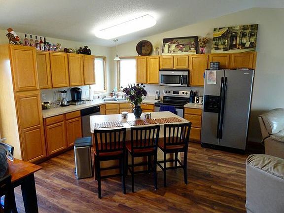 Enjoy Country Living Close to Town on 1.56 Acres on quiet cul-de-sac! Like new Multi-Level Home in Prairewood Estates. Walk right in to main level with new laminate wood flooring and paint. New Front Door with keyless entry. Kitchen has center island with room for sit-in stools. Stainless steele appliances. Vaulted ceilings. Dining area off of kitchen with sliding door leading to deck. Upper level poses master bedroom with full master bath and walk-in closet, as well as a 2nd bedroom with walk-in closet & full bath. Lower level is yet to be finished but leaves many options for family/rec room, bathroom, storage room, & laundry room. Lower level also has walkout sliding door to backyard. Basement level has 2 Large finished bedrooms and another walk-in closet. Attached 3 stall garage. New Water Heater Sept 2016. Amber Maple Trees Surrounding Home. Yard leaves endless possibilities...enjoy the view, entertain, or sledding in the winter. Come take a look!!