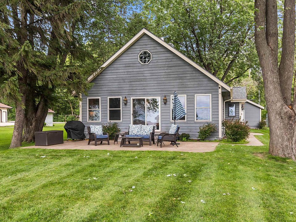 Incredible SUNSETS await from this LAKE BUTTES DES MORTS gem set on the desirable North Shore! The living rm boasts Walls of Windows, bringing the outdoors in! An inviting 2-way gas FP graces both Dining & Living Rms w/Vaulted Ceilings. Luxury Vinyl Plank flooring flows thru-out the first floor, while a Walk-In Tile Shower adds a touch of luxury to the Master Bath. Relax on the large Patio, Dock, or Screened-In Boathouse. Whether looking to fish, just "take a cruise", ski, or pull the kids tubing, ...this charming retreat has access to numerous connected waterways! Time to start making those lakefront memories with family & friends. (Furnace, A/C, and all Roofs updated in 2012 per previous owner.) 48 hr. binding acceptance.