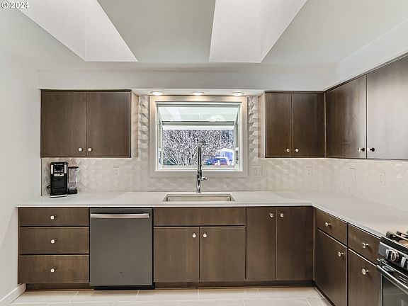 Newly renovated and nestled on a beautifully landscaped 0.26-acre corner lot, this single-level, mid-century ranch sits at the end of a quiet, centrally located cul-de-sac w/ quick access to HWY, downtown Milwaukie, and the popular Sellwood neighborhood. Whether entertaining or simply relaxing, head outdoors and experience wildlife sightings of owls, eagles and blue herons from the front porch, or enjoy some privacy on the recently rebuilt (Trex) covered back patio w/ fully fenced yard that provides ample space for families and pets. Turn the second driveway into a basketball court, or use the RV hookup access to park your recreational toys. Fully updated inside and out, this home also features solar panels w/ reverse meter (owned), offering owners significantly reduced power bills. Beautifully finished and bright, the home also features large bedrooms w/ an abundance of natural light from multiple large skylights and bay windows throughout. Use the large bonus room as a 4th bedroom, 2nd family room, or game room. Recent updates include: kitchen, bathrooms, electrical panel, PEX water lines, water heater, HVAC, flooring and much more (see complete UPDATES LIST attached to MLS).