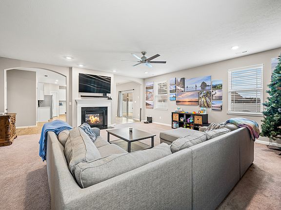 Built in 2021, this HOME features 3,416sqft of open concept living space, 4 Bedrooms, 3 full Baths, a double sided gas fireplace, three car garage, and a fenced in backyard with a large poured concrete patio and gazebo. The home welcomes you into a bright two story foyer, just off of the home office. The spacious great room shows off the double sided gas fireplace that can be seen from the dining area and kitchen. The bright kitchen features an island with breakfast bar and walk-in pantry. Upstairs, the primary bedroom has two walk-in closets that have been outfitted with excellent shelving and hanging space. The bathroom features double sinks, shower and garden tub. Three additional bedrooms, a large loft, full bathroom & laundry space complete the home. The front of the home also features a basketball goal and outdoor speakers. Inside there are Alexa enabled light switches throughout. 10yr Limited Builder Warranty still in place. Welcome Home!