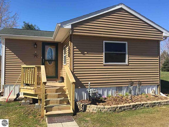 A great property on 5.88 acres close to town with lots of open space to stretch out. At the corner of M-76 & Wyatt Roads, provides blacktop roads on two sides of the property. The home has been recently updated with spray foam insulation, new siding, new roof structure, new covered deck to relax & enjoy the day. This property has natural gas, hi-speed internet access, low winter heating bills and low summer cooling bills. This home is in excellent condition and move in ready. Also has second well, natural gas hookup, septic system, for guest RV hook up, or add a second house for rental income. Plenty of space to build & rent the current house for additional income!