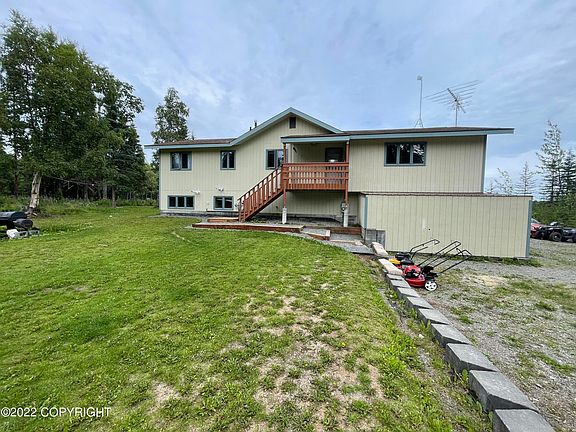 Salamatof Lake View Home. Large living room with vaulted ceiling. 3 bedrooms on main level. Lower level has two additional rooms for den or office, a sitting area and bath with custom tile. 2 car garage with smart door openers, storage, utility sink and room for all your toys. All with in 20 mins of Kenai.
