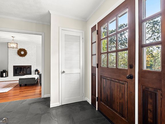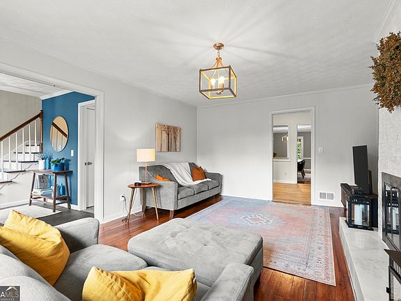 This gorgeous light & bright home is tucked on a quiet street in the heart of East Cobb on a slightly elevated lot for great drainage and even better views. You're immediately greeted by a welcoming foyer with a great flowing floorplan, to the right find the living room with large windows and centered by a lovely fireplace. The heart of this home, the kitchen, is a real stunner! Beautiful newer white cabinetry with updated backsplash and granite countertops, stainless steel appliances including gas range, and a large peek-through window into bonus space offers a great space for family meals or entertaining friends. Oversized laundry room and walk in storage (could easily be made into pantry or just bonus storage space). On the other side of the kitchen, find formal living and dining room that can be used as flex space, currently a music room and library with door leading to large deck. Backyard offers privacy with mature trees as well a large flat space to enjoy. Upstairs, find four generously sized, light-filled bedrooms--larger than most you'll find in the area and price point! Primary offers en-suite bathroom with tile shower and updated vanity, and secondary bathroom has easy hall access with updated vanity and separate space for shower/tub and toilet. One of the best things about this home is it's location, in a neighborhood full of mature trees without drive-thru traffic, it's peaceful and feels remote, and yet it's 5 minutes from The Avenues or downtown Roswell, tons of parks and nature trails like Roswell's Riverwalk Trail along the Chattahoochee, and zoned for top-performing East Cobb schools. You won't want to miss this one!