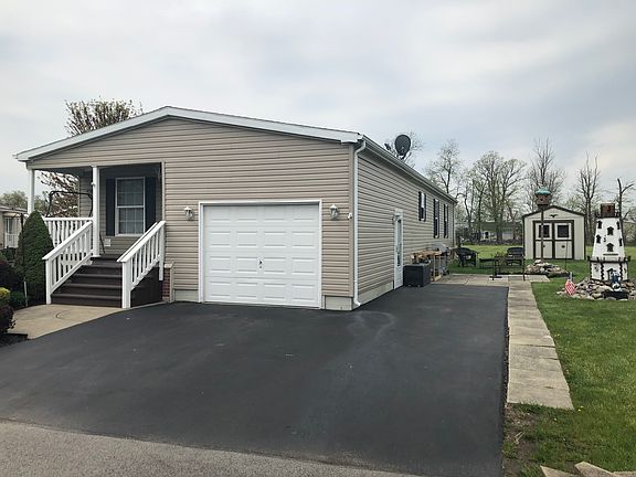 Maintenance free home with bright open floor plan. Vaulted ceilings with crown molding, fully applianced oak kitchen w/center island. Large living room, formal dining room, 1st floor laundry. Master bdrm w/private bath & deck. Custom closet shelving bedrooms. Att garage w/extra overhead storage & double wide driveway. Lot Rent $555/month-includes taxes & cable tv and more !!!