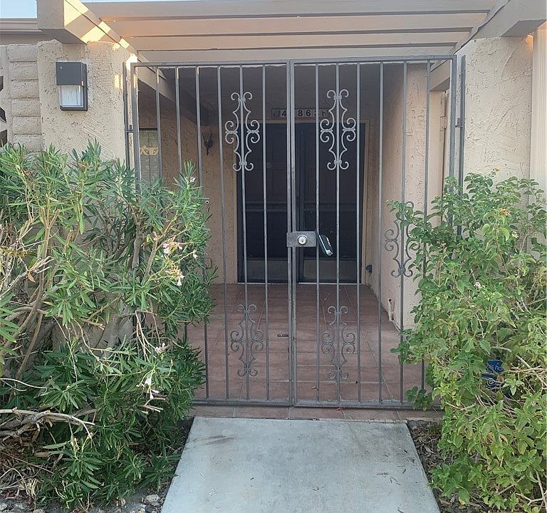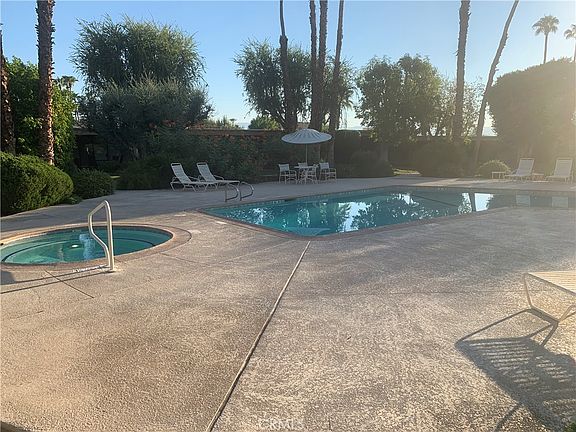 SIGNIFICANT PRICE ADJUSTMENT!!! INSTANT EQUITY. Seldom offered unit in quiet, private PUD community of Montecito in Palm Desert CA. Approximately 1390 sq ft with 2 Bedrooms, 2 Baths located in the South part of complex. Close to mountain trails and El Paseo shopping. Unit has view of mountains, community swimming pool and spa. Open concept with recent remodel of kitchen with newer appliances; dining room and living room are large and ideal for entertaining. Huge master bedroom with ensuite bathroom, mirrored wall hiding expansive closet and sliding doors to patio and common areas. Down a hall to a private second bedroom which is again is large, with patio doors, front exposure and sitting area. A bathroom is located right next to bedroom entrance. Unit is need of some upgrading and cosmetic attention. Your answer to a winter getaway, full-time living or fix and flip. Unit has its own garage and ample parking on a quiet street. Agent resides in complex and available anytime for showing with a phone call.