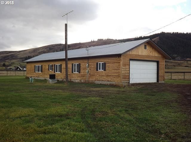 Nicely located log sided home, views, and pasture. Three bedroom, 2 baths, open floor plan. Attached two car garage, shop with inside parking, storage, and a work shop. Some updating and repairs needed on the home. New electric furnace recently installed. Some plumbing replaced.