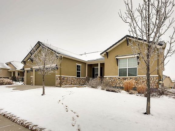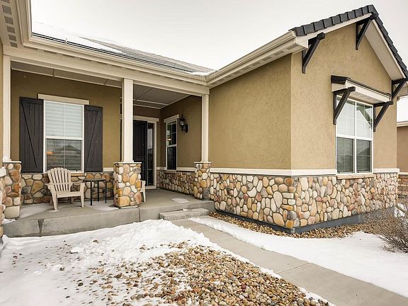 Popular Vail model with mountain views in desirable Anthem Ranch. Beautiful, open floor plan with mountain views from the family room, kitchen, back deck and master bedroom. Great location backing to a green belt and walking trail. Just a short walk to the Aspen Lodge. Be sure to tour the Aspen Lodge to see why this is one of the top selling 55+ active adult communities in Colorado. With over 100 homeowner clubs, there is something for everyone at Anthem Ranch. Over 48 miles of open space trails that start right outside your door. Solar system has been purchased for this home, keeping utility bills very low.