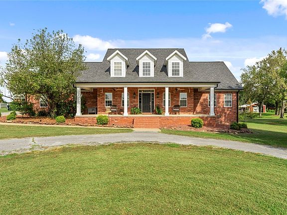 Just a few minutes from Uptown Rogers, Mt Hebron Park, the AMP and bike trails, this 7.11 acre picturesque charming property offers the perfect blend of privacy and convenience-ideal for horse or land lovers! A long, tree-lined driveway leads to a charming brick home with 4 bedrooms, office, formal dining, hardwood floors, gas cooktop, and double gas convection ovens. Enjoy peaceful mornings on the covered porch. Property includes a 3-car attached garage, 2-car detached garage, 3-sided shed, and a classic red pole barn—perfect for equipment, storage, or animals. White split rail fencing and incredible curb appeal make this a standout. Room to roam, raise animals, or simply enjoy the privacy and beauty of your own in-town retreat! BRAND NEW Interior Paint Thruout, and All Hardwood Floors just Refinished. New roof, hvac, water heater in 2020.